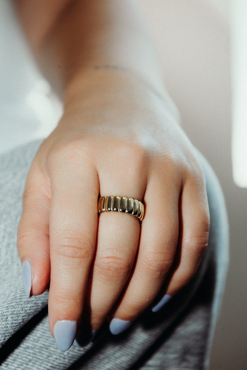Impactante et sculpturale, cette bague en vermeil (argent sterling plaqué or) arbore un effet bombé qui attire le regard. Statement et stylée, elle apporte une touche audacieuse et moderne.